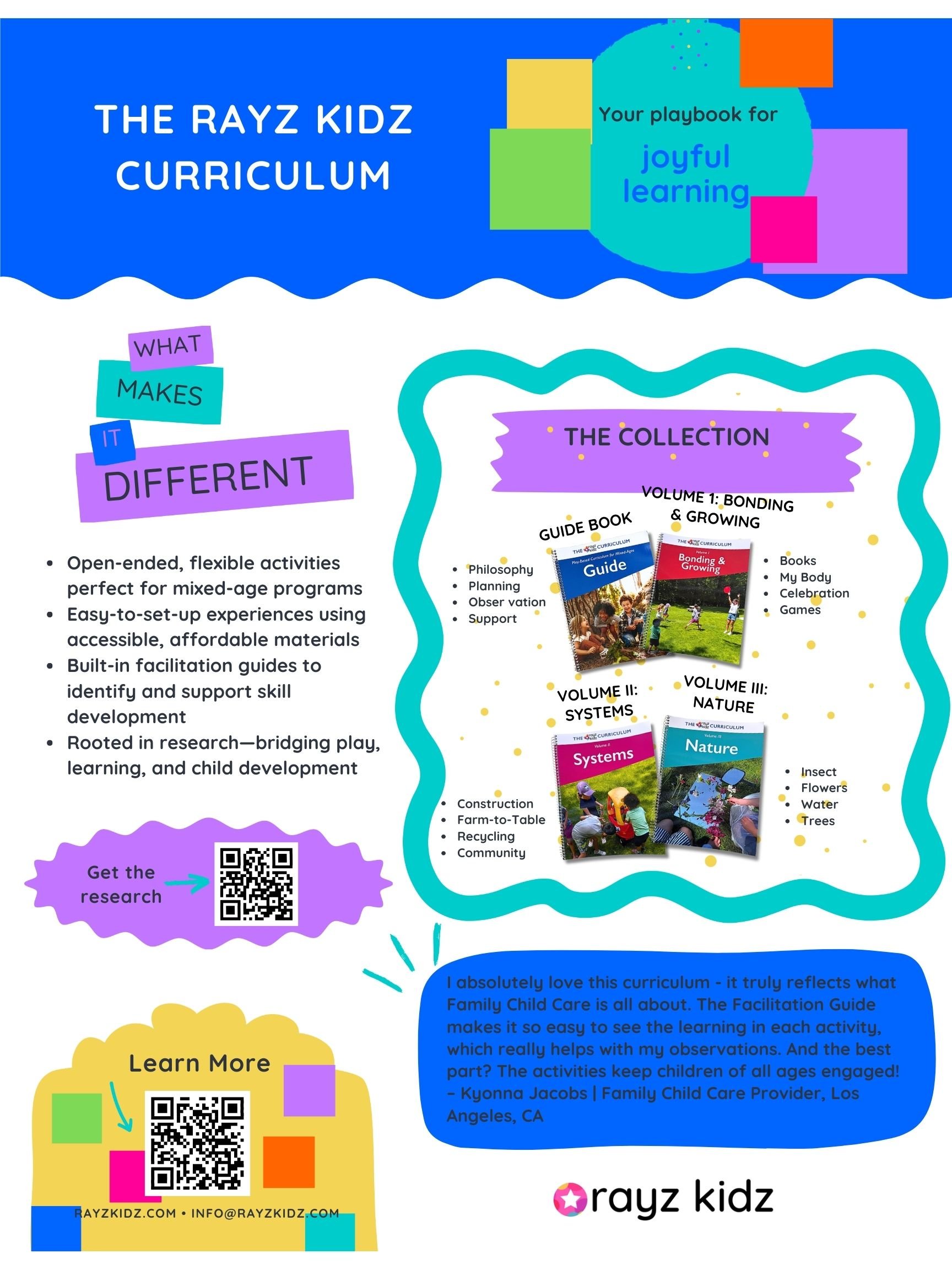 Through Rayz Kidz, children engage in play-based, imaginative activities that encourage creativity, collaboration, and self-expression. The Experience Curriculum complements this by providing structured, developmentally appropriate art experiences that connect creativity to early learning goals and real-world exploration.